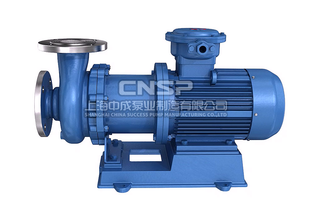 CQB磁力驱动离心泵(简称磁力泵),通常由电动机,磁力耦合器和耐腐蚀离心泵组成。其主要特点是利用磁力耦合器传递动力,完全无泄漏,当电动机带动磁力耦合器的外磁钢旋转时,磁力线穿过问隙和隔离套,作用于内磁钢上,使泵转子与电动机同步旋转,无机械接触地传递扭矩。在泵轴的动力输入端,由于液体被封闭在静止的隔离套内,没有动密封因而完全无泄漏。
