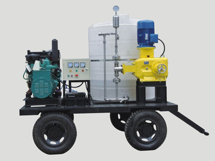 油田抗凝剂一般用于气井压裂中,主要起2个作用,一在施工起泡后减小冻胶施工摩擦阻力,提高施工冻胶的携砂性能;二是降低返排液汽化水密度,增加地层能量,利于压裂液的返排。 主要有溶液箱、计量泵、过滤器、安全阀、止回阀、脉冲阻尼器、水位表、控制柜等组成一体化安装在一个底座上,安装有4个轮子及前桥转向系统,方便移动拖运。特别配置一套柴油发电机及完整的电控系统,供野外作业时设备的独立运行使用。